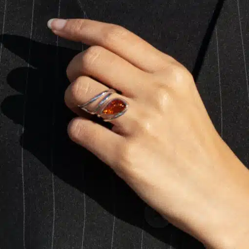 Bague en ambre de la Baltique et argent