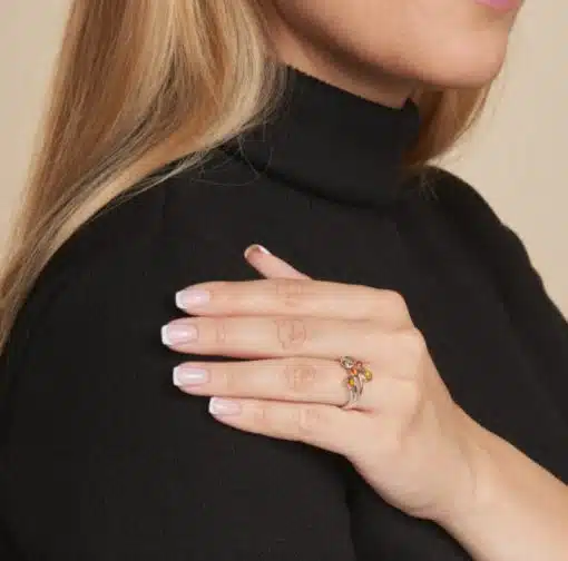 Le rhodium est un métal du groupe du platine. Une fine couche de rhodium sur l’argent confère au bijou un éclat similaire à celui de l’or blanc et le protège de l’oxydation pour un brillant durable.