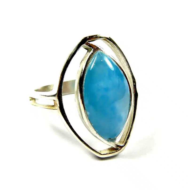 Le Larimar est une pierre rare qu’on ne trouve que dans une seule région au monde : la République Dominicaine. C’est une variante bleue de la pectolite, un silicate formé par l’activité volcanique. Sa teinte bleue est due à la présence de cuivre. Le Larimar a été officiellement découvert en 1974. Son nom vient de la fusion du prénom Larissa, et du mot espagnol « mar » (mer), en référence à sa couleur bleue océanique. Autrefois, les habitants de la région trouvaient déjà cette pierre sur les plages.