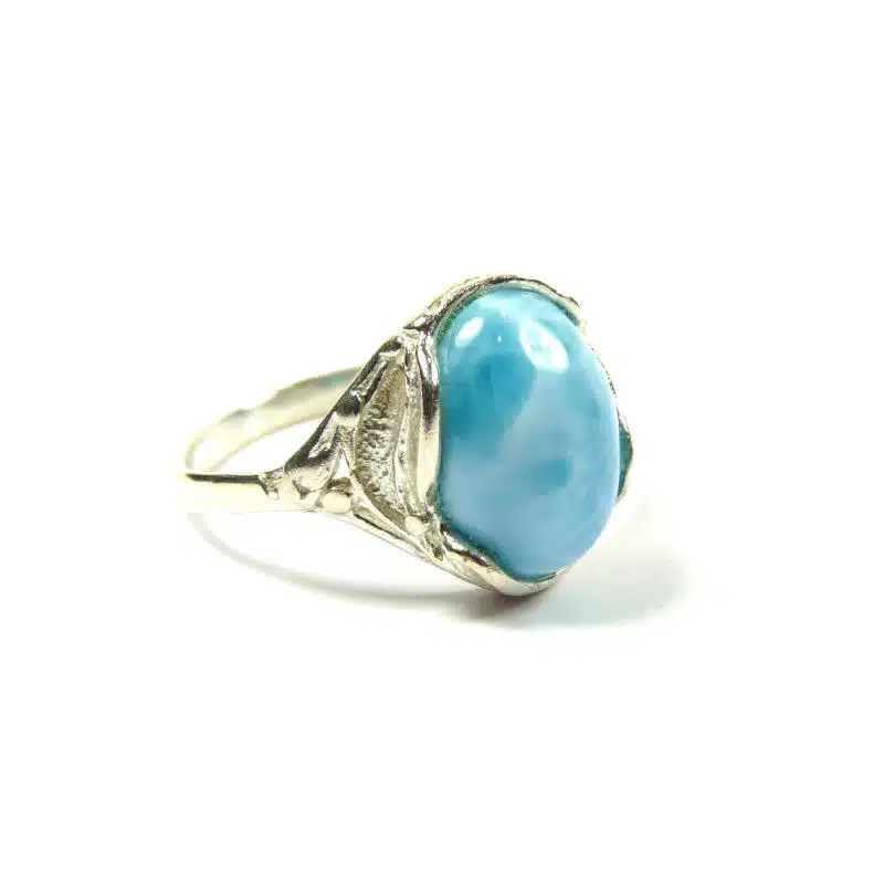 Le Larimar est une pierre rare qu’on ne trouve que dans une seule région au monde : la République Dominicaine. C’est une variante bleue de la pectolite, un silicate formé par l’activité volcanique. Sa teinte bleue est due à la présence de cuivre. Le Larimar a été officiellement découvert en 1974. Son nom vient de la fusion du prénom Larissa, et du mot espagnol « mar » (mer), en référence à sa couleur bleue océanique. Autrefois, les habitants de la région trouvaient déjà cette pierre sur les plages.