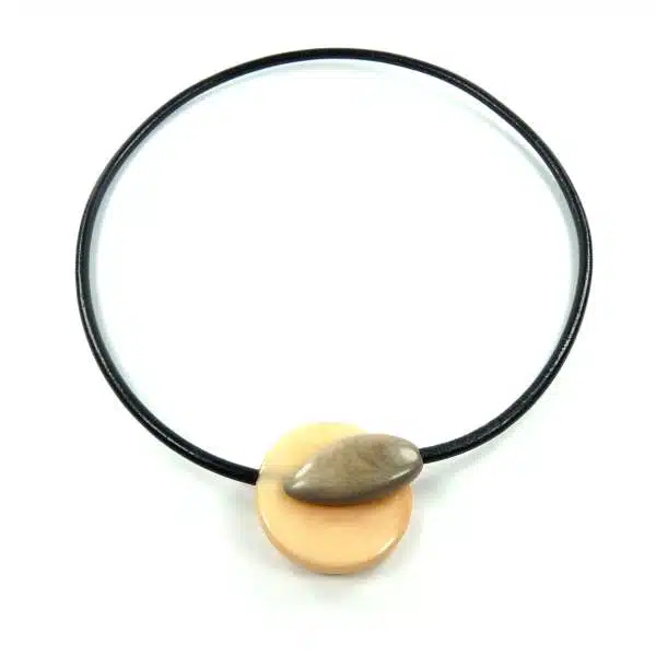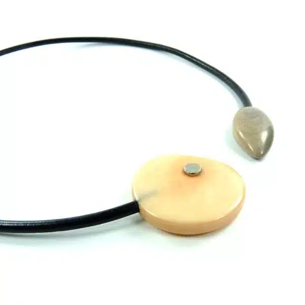 Collier en tagua (ivoire végétal), cuir, fermeture magnétique, L standard.
