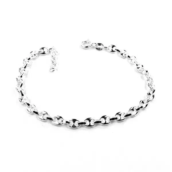 Bracelet en argent L 17 cm à 19 cm. Ajustable grâce à une chaînette d’ajustement.