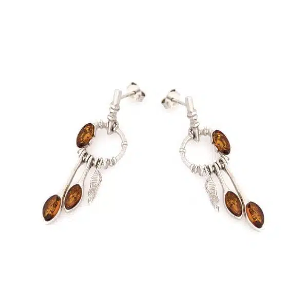 Boucles d’oreilles en ambre et argent 925/1000 rhodié