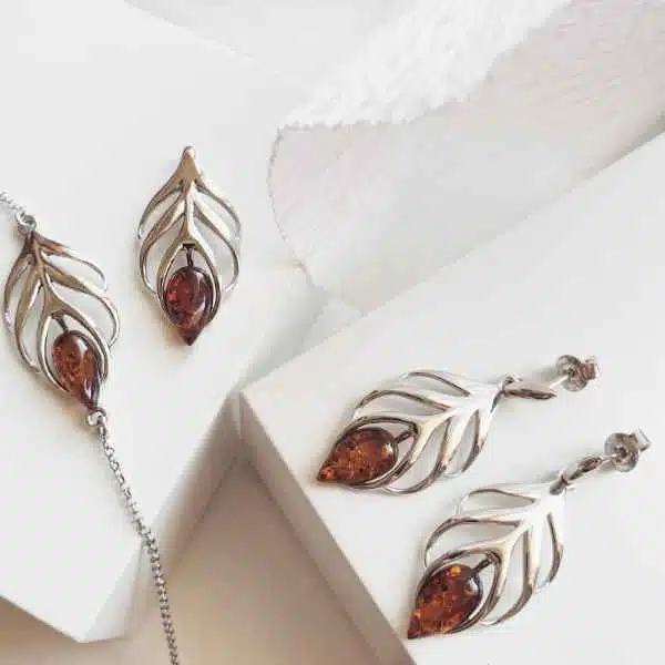 Ambre de la Baltique. L’appellation ARGENT 925/1000 indique la proportion d’argent fin dans le bijou au titrage légal.