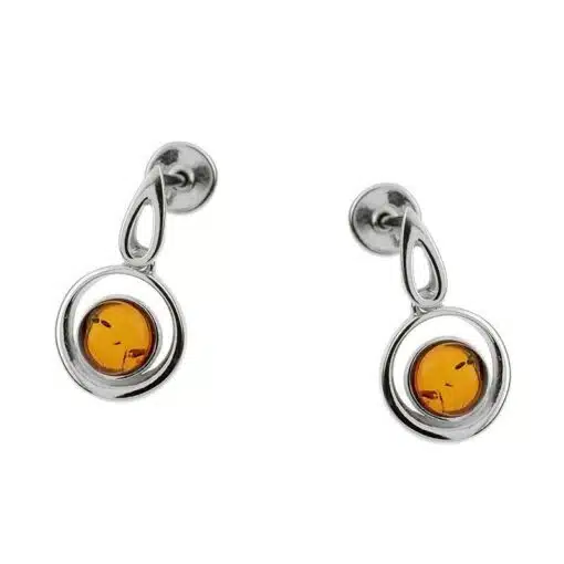 Boucles d’oreilles en ambre et argent 925/1000 rhodié H 1,5 cm. Écrin offert, certificat d’authenticité.