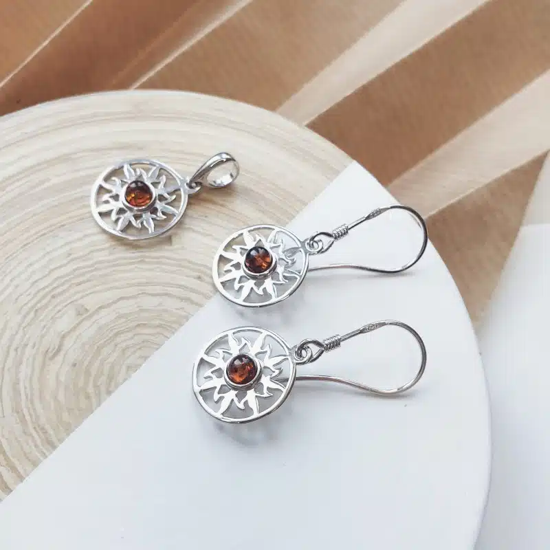 Ambre de la Baltique. L’appellation ARGENT 925/1000 indique la proportion d’argent fin dans le bijou au titrage légal.