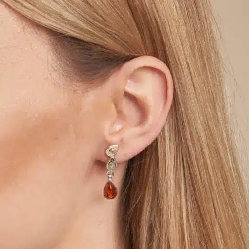 Boucles d’oreilles en ambre et argent 925/1000 rhodié