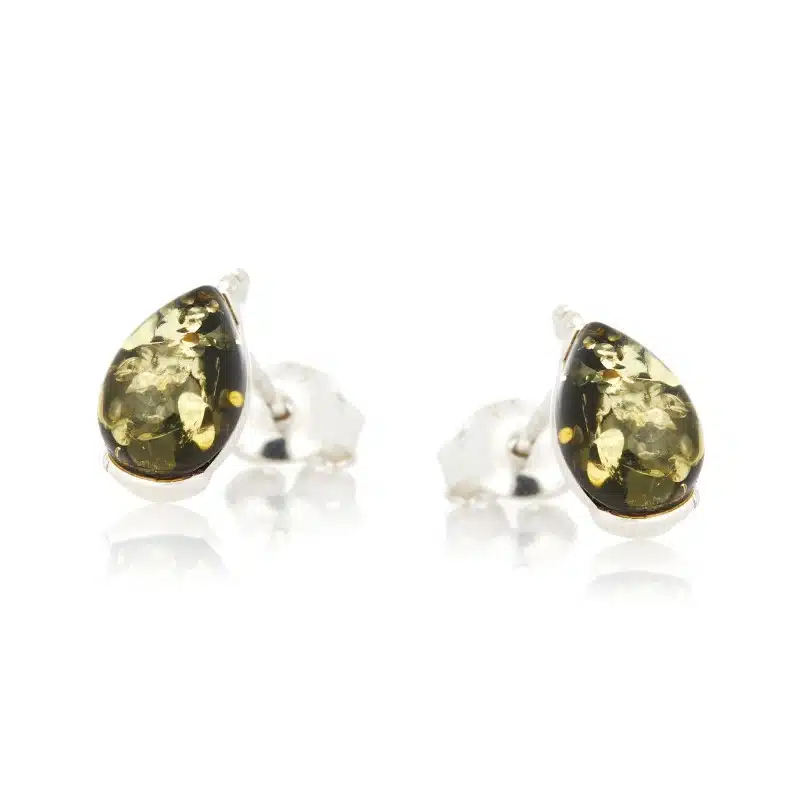 Boucles d’oreilles en ambre vert et argent 925/1000 rhodié