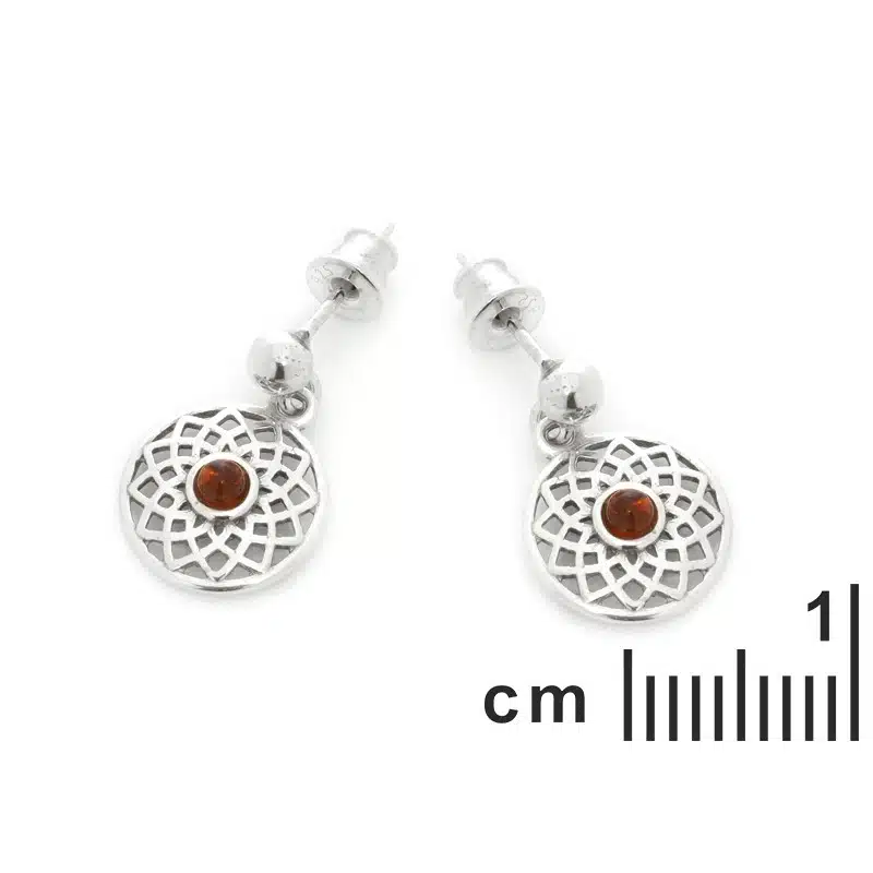 Boucles d’oreilles fleur de vie en ambre H 2 cm.