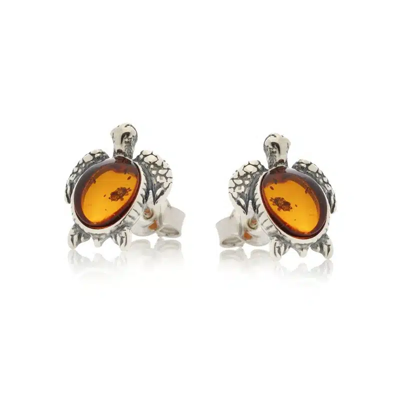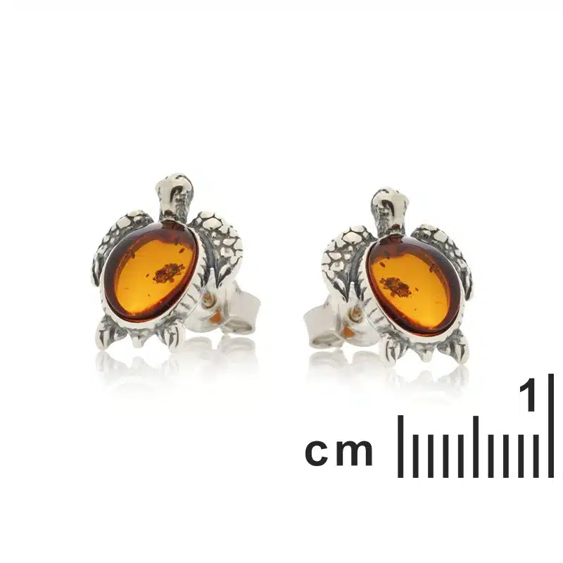 Boucles d’oreilles tortue en ambre H 13 mm.