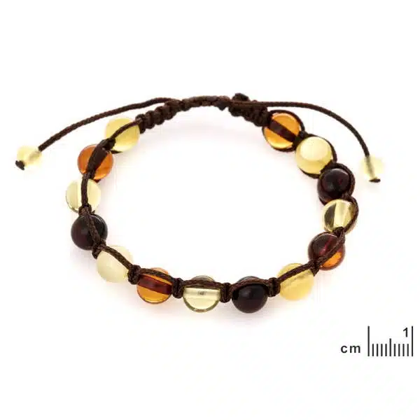 Bracelet en ambre, cordon ajustable grâce à des coulisses.