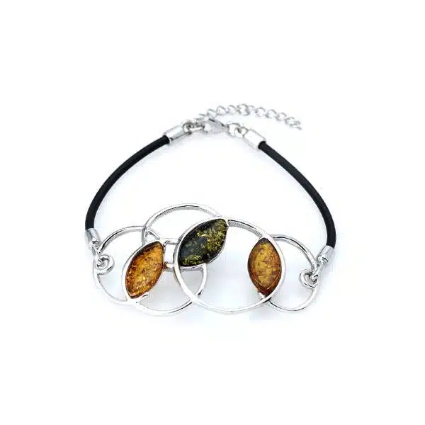 Bracelet en ambre et argent 925/1000 rhodié ajustable de 17 cm à 20 cm (pour toute taille de poignet). Écrin offert, certificat d’authenticité.