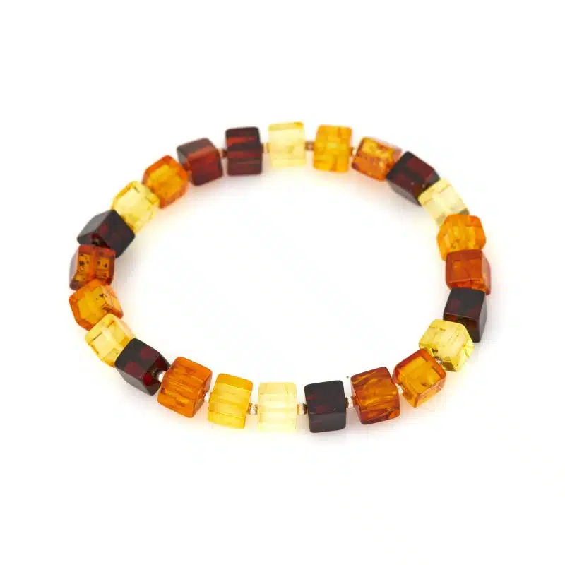Bracelet en ambre multicolore, cubes Bracelet en ambre multicolore, cubes, taille standard, enfilage élastique.