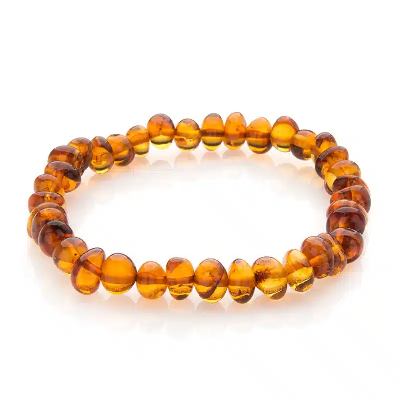Bracelet en ambre de la Baltique taille standard, enfilage élastique. Écrin offert, certificat d’authenticité.