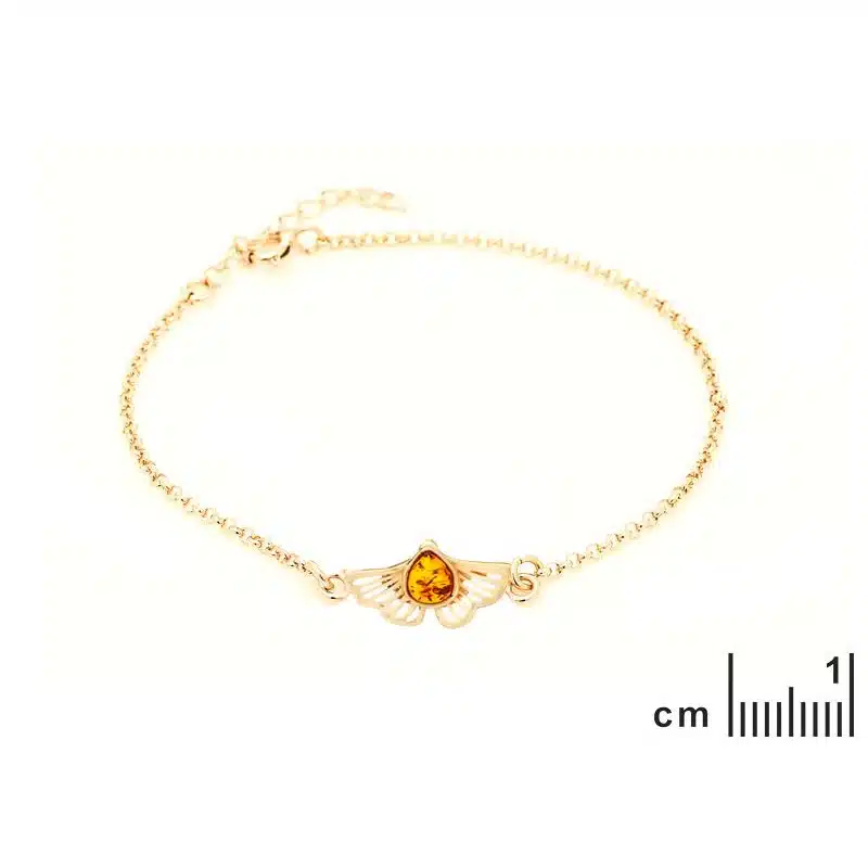 Bracelet ginkgo en ambre L 17,5 – 20,5 cm ajustable, chaînette d’ajustement