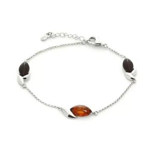 Bracelet en ambre de la Baltique multicolore et argent 925/1000 rhodié ajustable de 18 cm à 21 cm (pour toute taille de poignet)