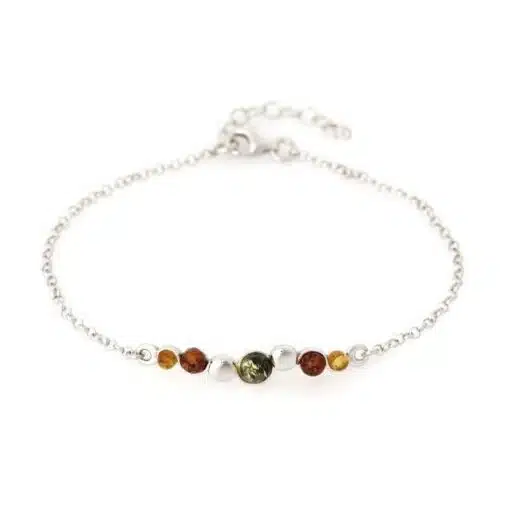 Bracelet en ambre de la Baltique et argent 925/1000 rhodié ajustable de 18 cm à 21 cm (pour toute taille de poignet)