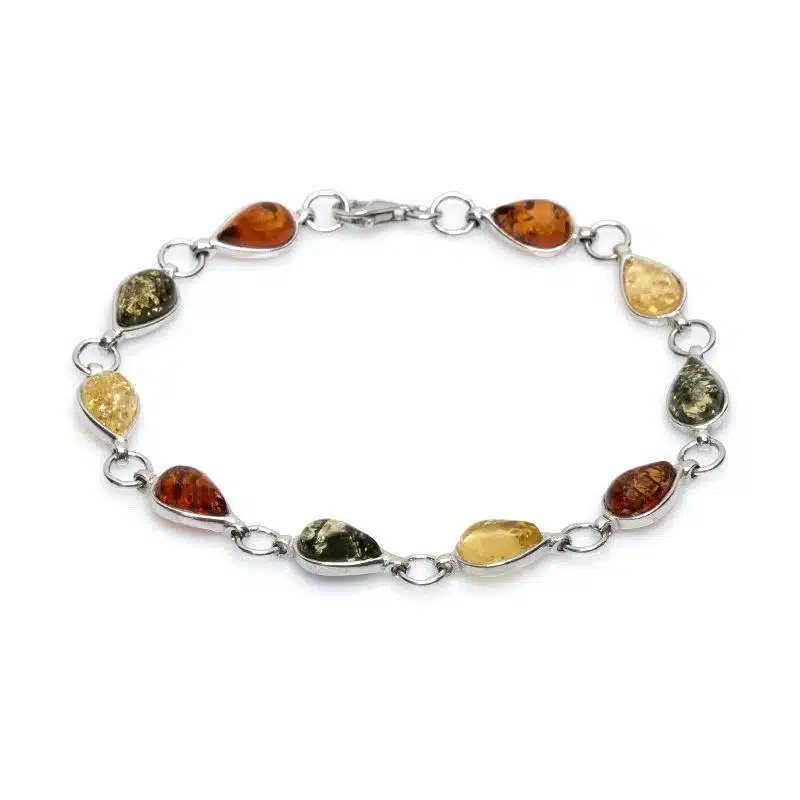 Bracelet ambre multicolore goutte et argent rhodié L. 18,5 cm (standard)