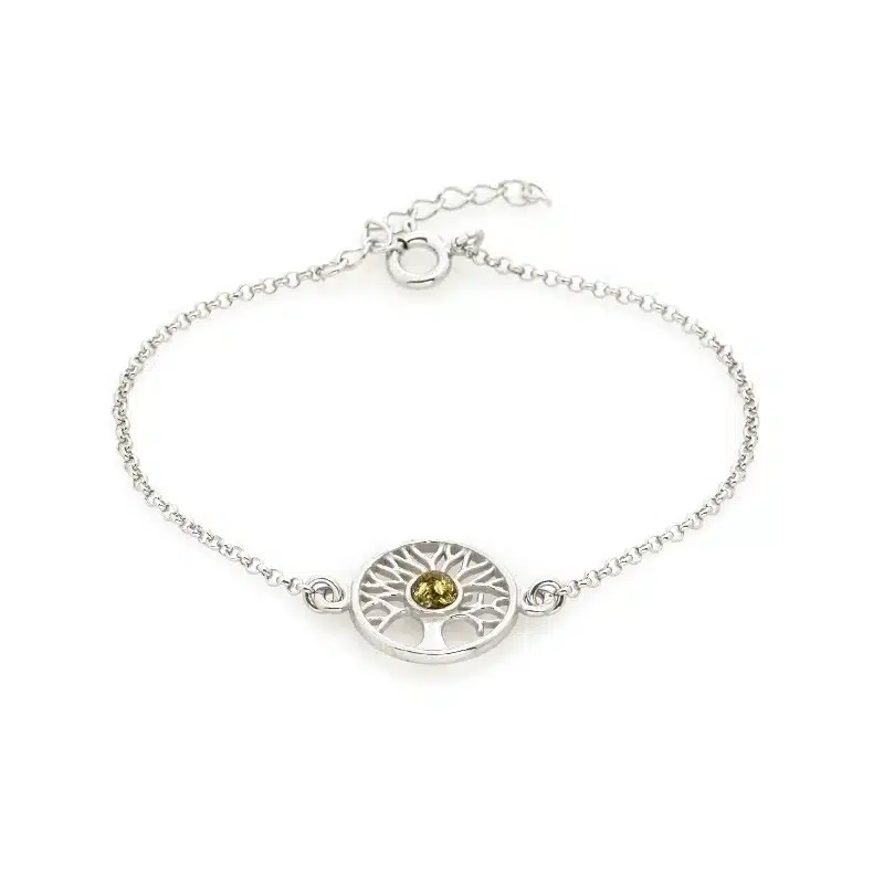 Bracelet ambre vert et argent