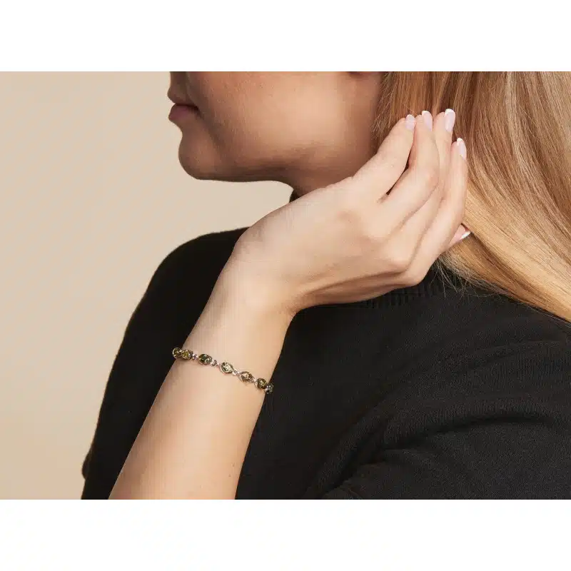 Bracelet ambre vert ovale et argent rhodié L. 19 cm (standard)