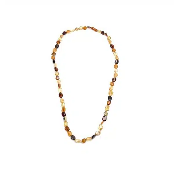 Collier en ambre, longueur 72 cm, fermoir discret couleur ambre à vis.