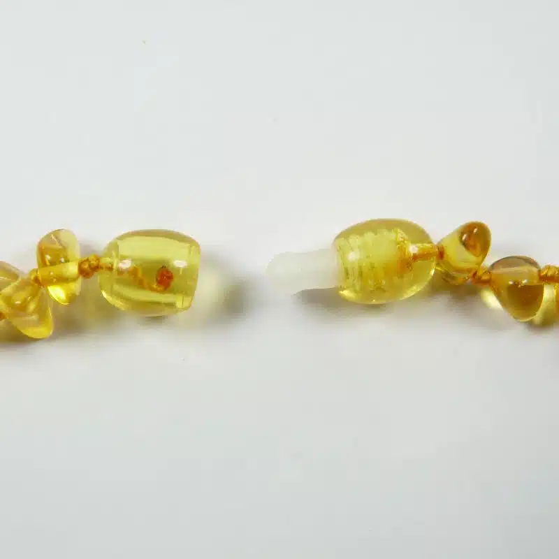 Avertissement : Les colliers en ambre, bien que disposant de fermoirs de sécurité, sont à porter par les enfants sous la surveillance des parents ou d’adultes.