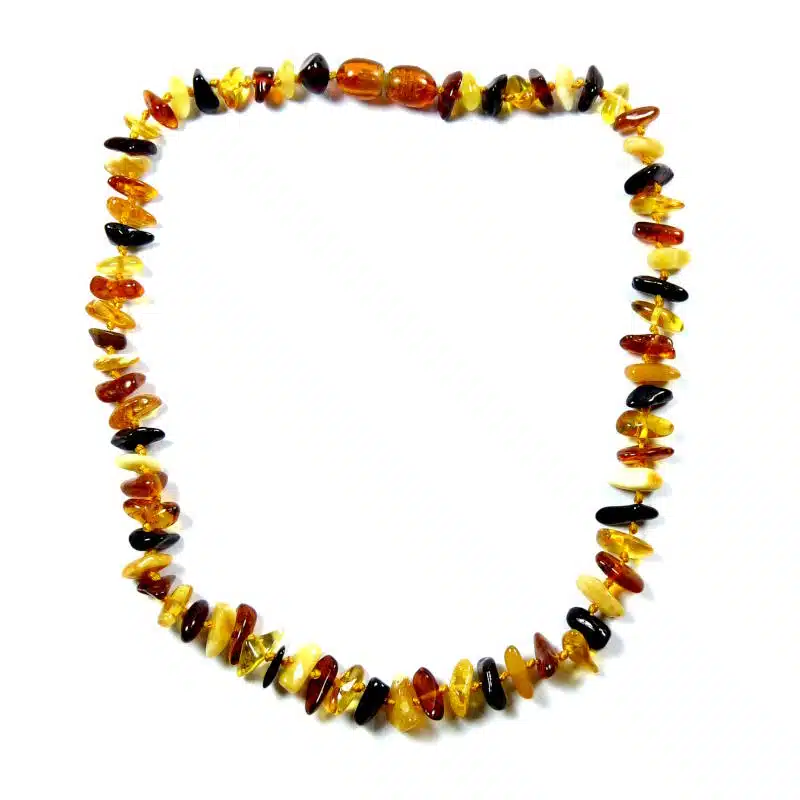 Collier en ambre multicolore réalisé à partir de véritables perles d’ambre naturel de la mer Baltique, soigneusement polies pour un toucher doux et agréable.