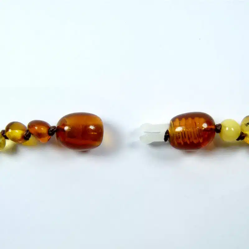 Avertissement : Les colliers en ambre, bien que disposant de fermoirs de sécurité, sont à porter par les enfants sous la surveillance des parents ou d’adultes.