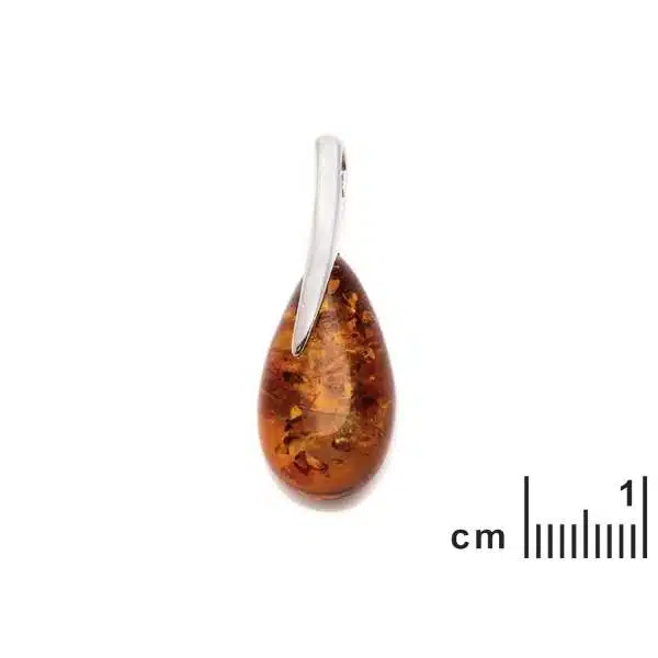 Pendentif en ambre et argent 925/1000 rhodié. H 25 mm. Écrin offert, certificat d’authenticité.
