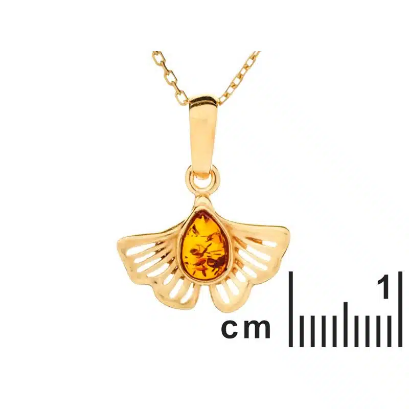 Pendentif ginkgo en ambre et argent 925/1000 doré H 18 mm. Emballage cadeau et écrin offerts, certificat d’authenticité. Vendu et expédié par Bijouterie Azurite Bergerac, France