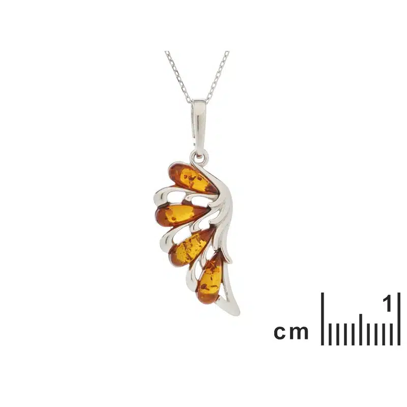 Pendentif en ambre et argent 925/1000 rhodié H 3,7 cm. Écrin offert, certificat d’authenticité.