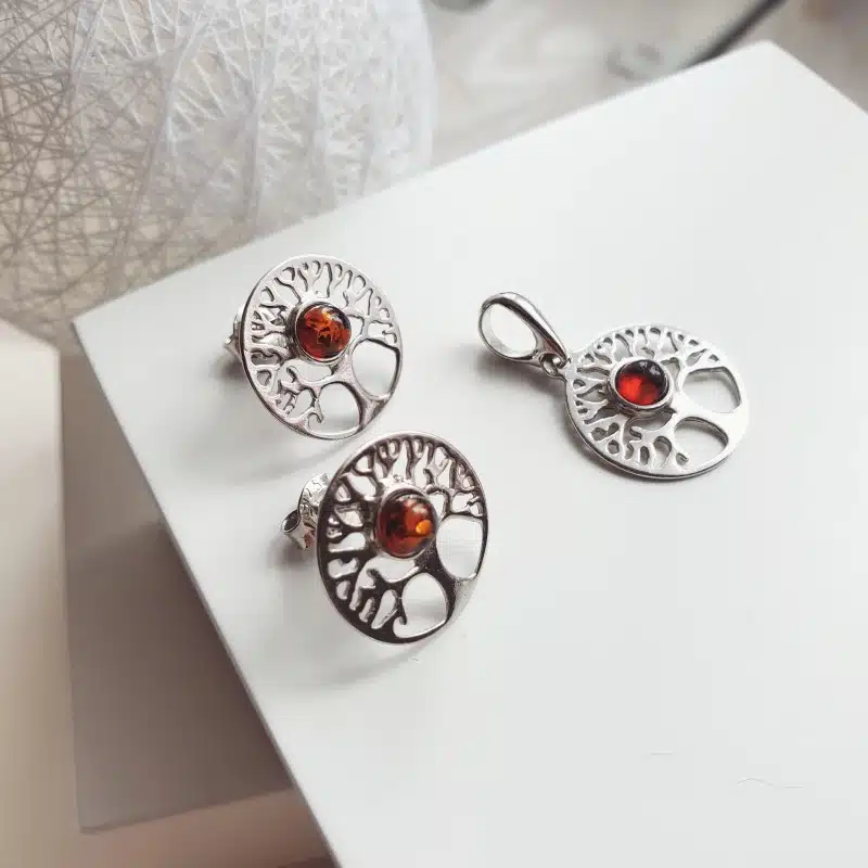 Pendentif en ambre et argent arbre de vie