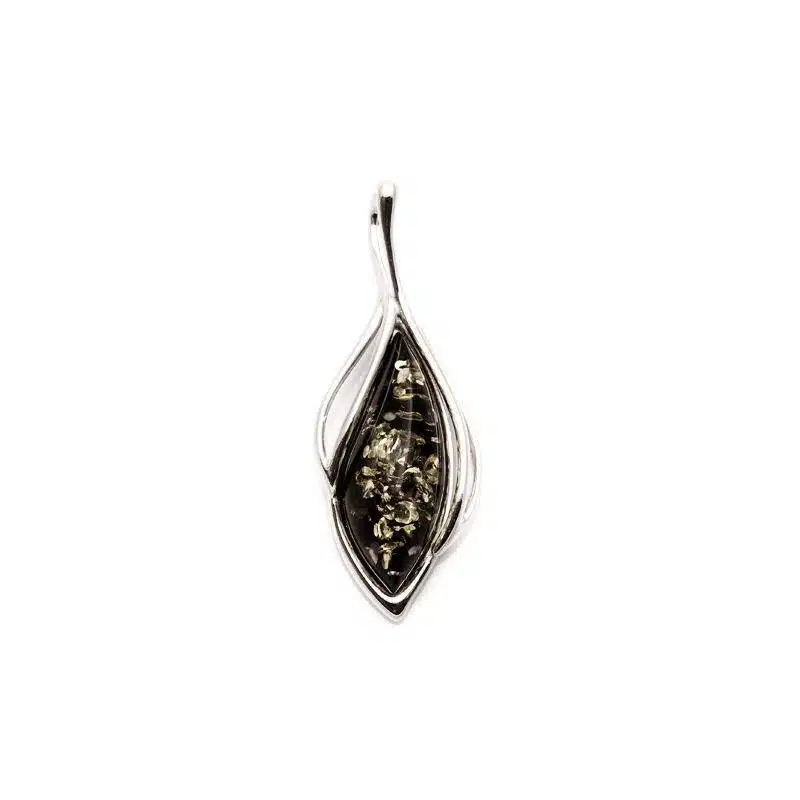 Pendentif ambre vert et argent 925/1000 rhodié H 35 mm
