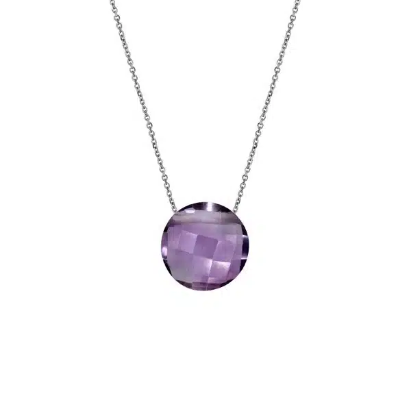 Collier en améthyste et argent 925/1000 rhodié