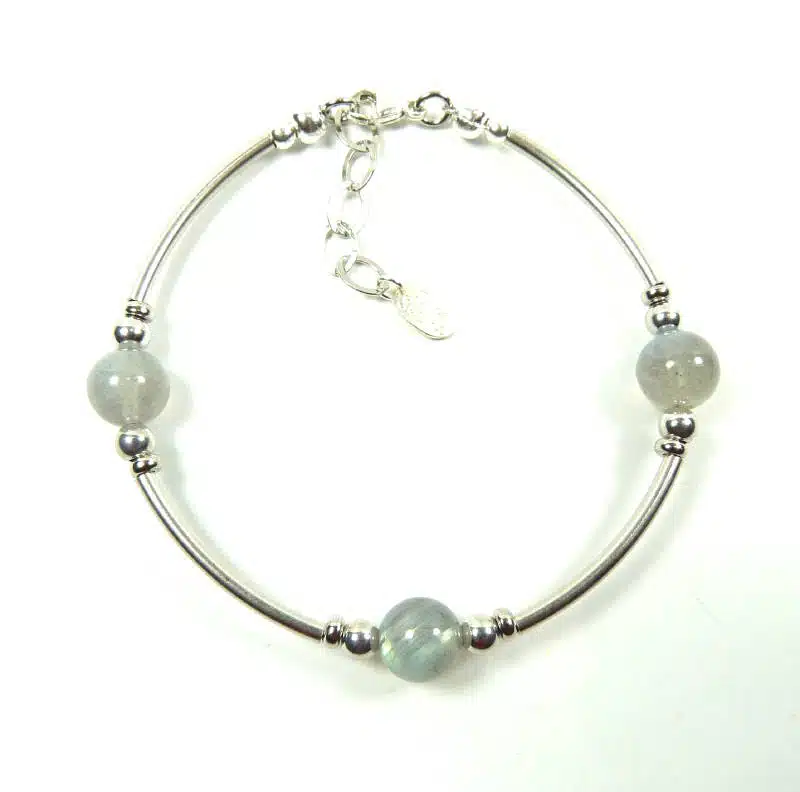 Bracelet en labradorite, perles rondes en labradorite Ø 8 mm. Chaînette d’ajustement.