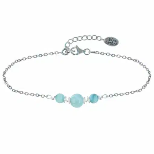 Bracelet en larimar et argent 925/1000, taille de poignet standard, chaînette d’ajustement.