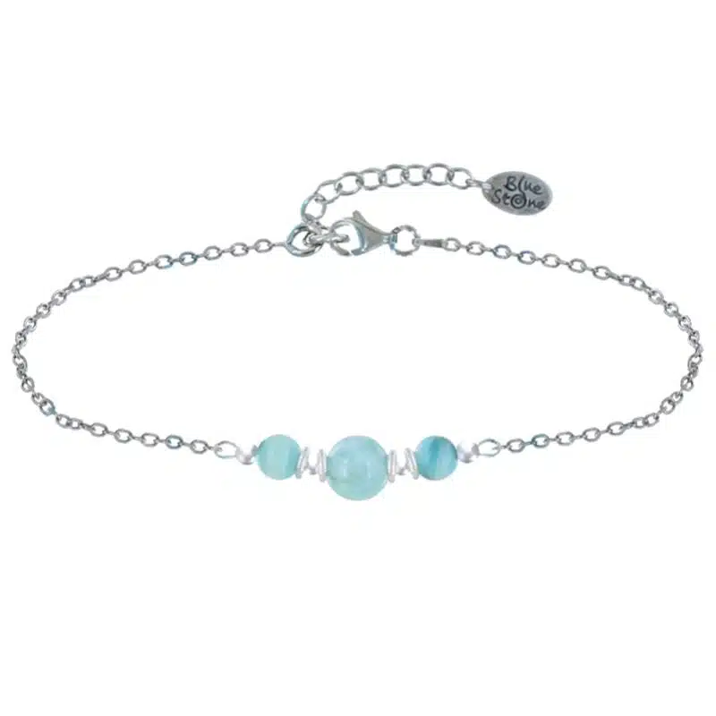 Bracelet en larimar et argent 925/1000 rhodié. Écrin offert, certificat d’authenticité. Vendu et expédié par Bijouterie Azurite Bergerac, France