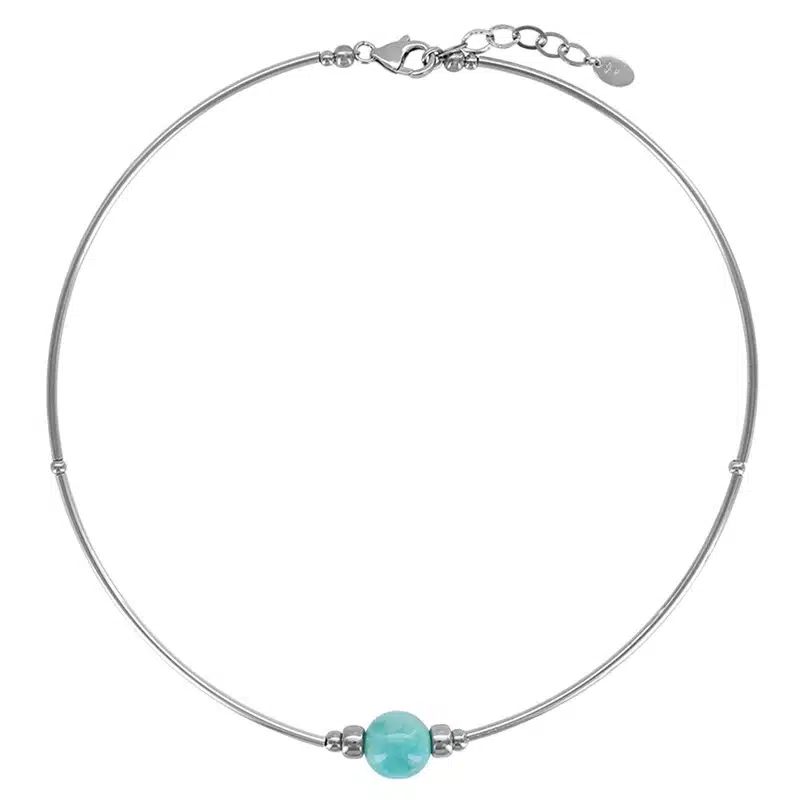 Collier en larimar et argent 925/1000 rhodié