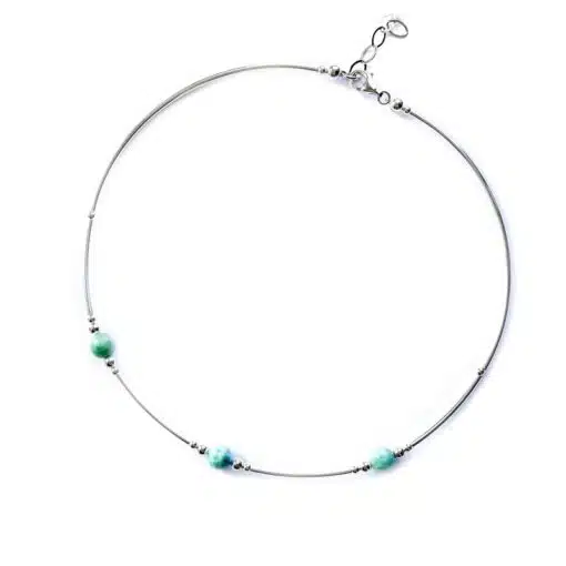 Collier en larimar et argent 925/1000 rhodié. Écrin offert, certificat d’authenticité.