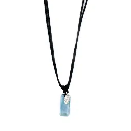 Collier en larimar de République Dominicaine. Pendentif 10 x 16 mm. Cordon ajustable de 40 à 84 cm.