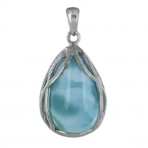 Larimar de République Dominicaine. L’appellation ARGENT 925/1000 indique la proportion d’argent fin dans le bijou au titrage légal.