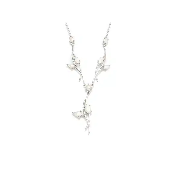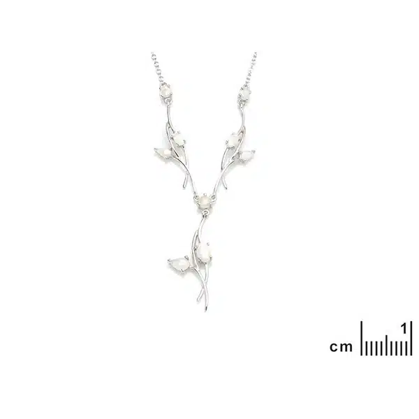 Collier en opale noble, opale blanche d’Australie. L’appellation ARGENT 925/1000 indique la proportion d’argent fin dans le bijou au titrage légal. Le rhodium est un métal du groupe du platine. Une fine couche de rhodium sur l’argent confère au bijou un éclat similaire à celui de l’or blanc et le protège de l’oxydation pour un brillant durable.