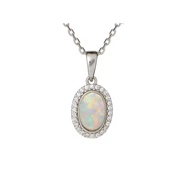 Pendentif en opale noble, opale blanche d’Australie et oxydes. L’appellation ARGENT 925/1000 indique la proportion d’argent fin dans le bijou au titrage légal. Le rhodium est un métal du groupe du platine. Une fine couche de rhodium sur l’argent confère au bijou un éclat similaire à celui de l’or blanc et le protège de l’oxydation pour un brillant durable.