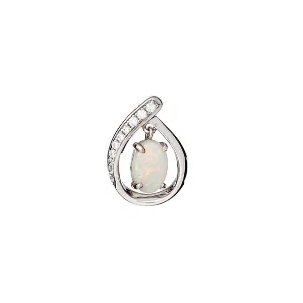Pendentif en opale noble, opale blanche d’Australie et oxydes. L’appellation ARGENT 925/1000 indique la proportion d’argent fin dans le bijou au titrage légal. Le rhodium est un métal du groupe du platine. Une fine couche de rhodium sur l’argent confère au bijou un éclat similaire à celui de l’or blanc et le protège de l’oxydation pour un brillant durable.