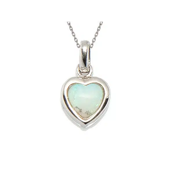Pendentif cœur en opale noble d’Australie et argent 925/1000 rhodié