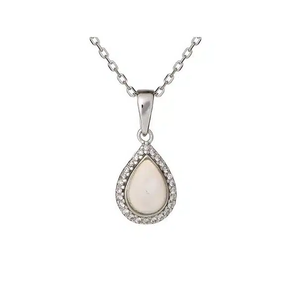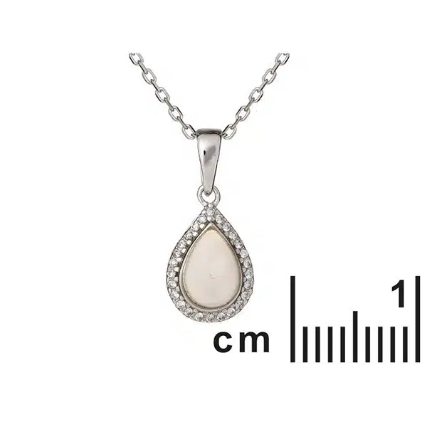 Pendentif en opale noble, opale blanche d’Australie et oxydes. L’appellation ARGENT 925/1000 indique la proportion d’argent fin dans le bijou au titrage légal. Le rhodium est un métal du groupe du platine. Une fine couche de rhodium sur l’argent confère au bijou un éclat similaire à celui de l’or blanc et le protège de l’oxydation pour un brillant durable.
