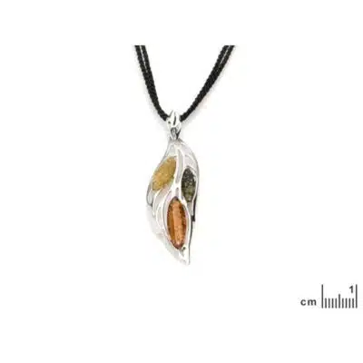 Ambre de la Baltique. L’appellation ARGENT 925/1000 indique la proportion d’argent fin dans le bijou au titrage légal.