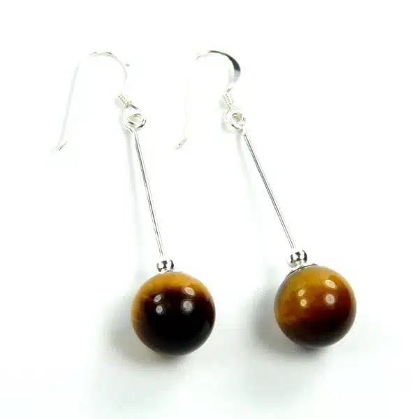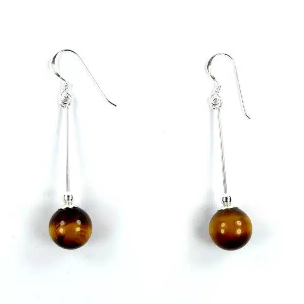 Boucles d’oreilles en œil de tigre et argent L 50 mm.
