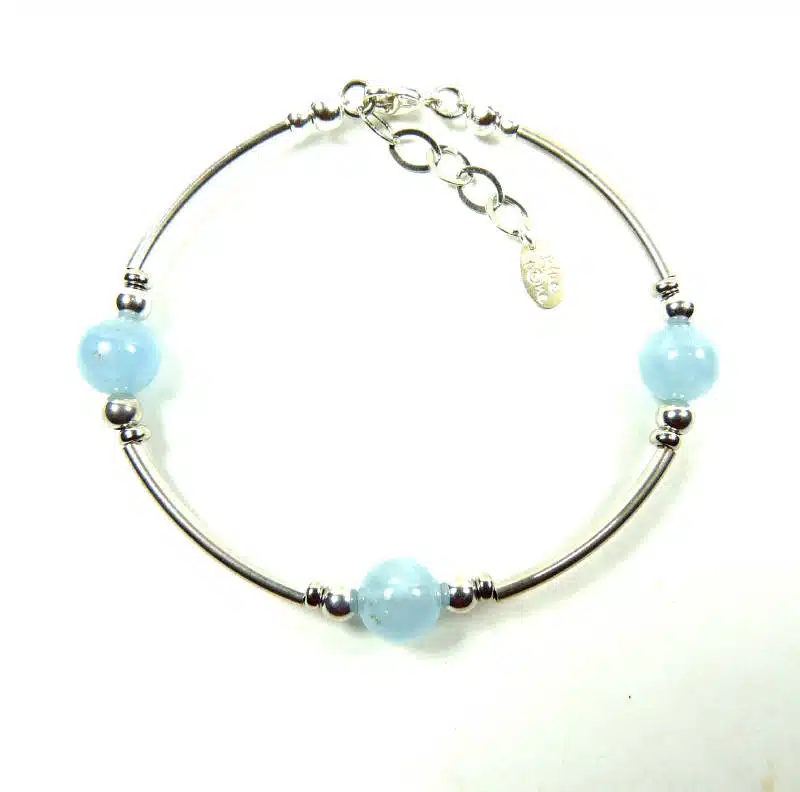 Bracelet en aigue-marine tubes argent