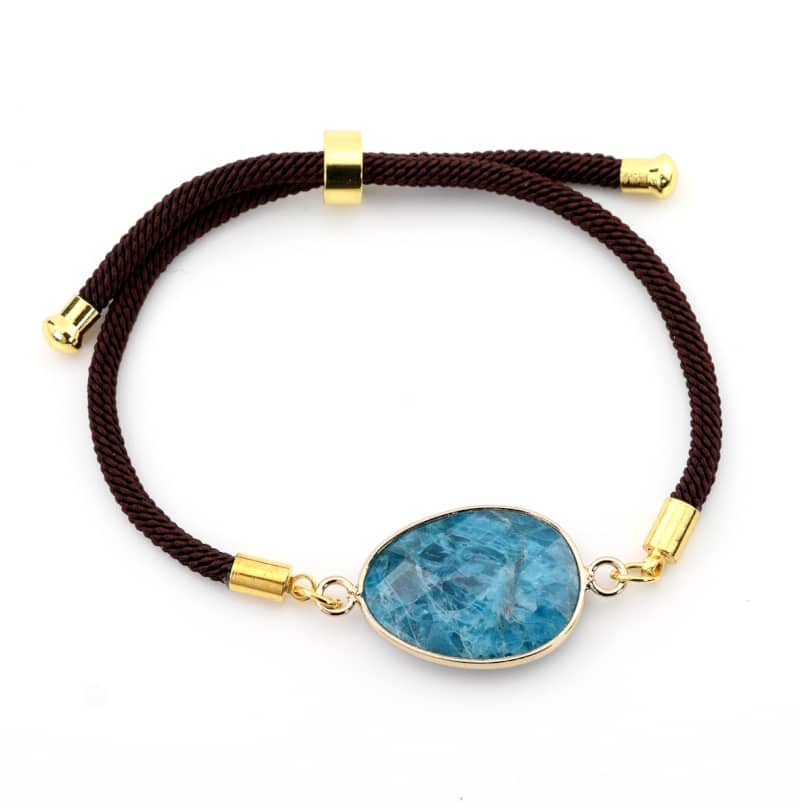Bracelet apatite bleue facettée, cordon ajustable